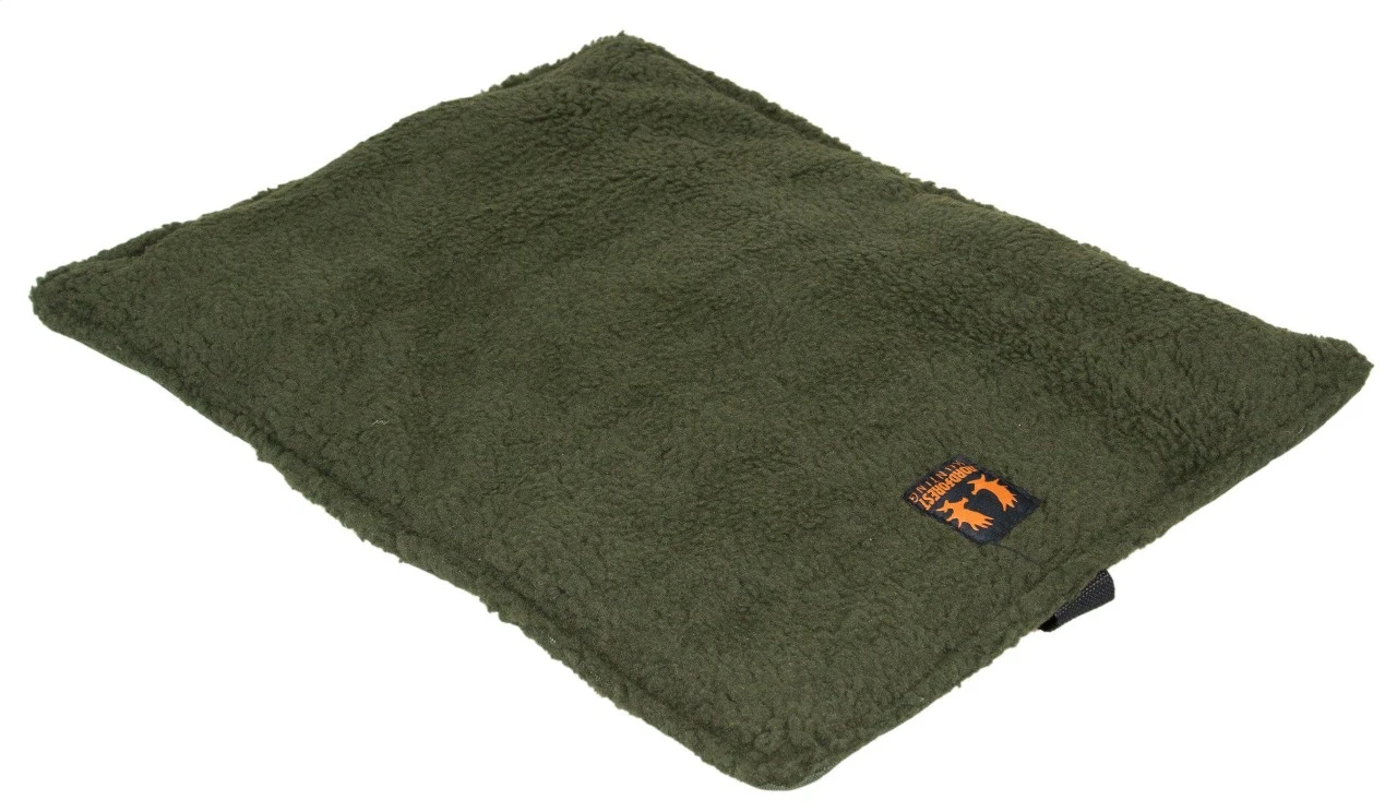 Overmateriale i fleece fremstillet af 100 % højisolerende polyester med termisk fyld, og underside fremstillet af vandtæt Oxford-nylon. Støjsvag. Mål 55 x 40 cm. Vægt 220 g.