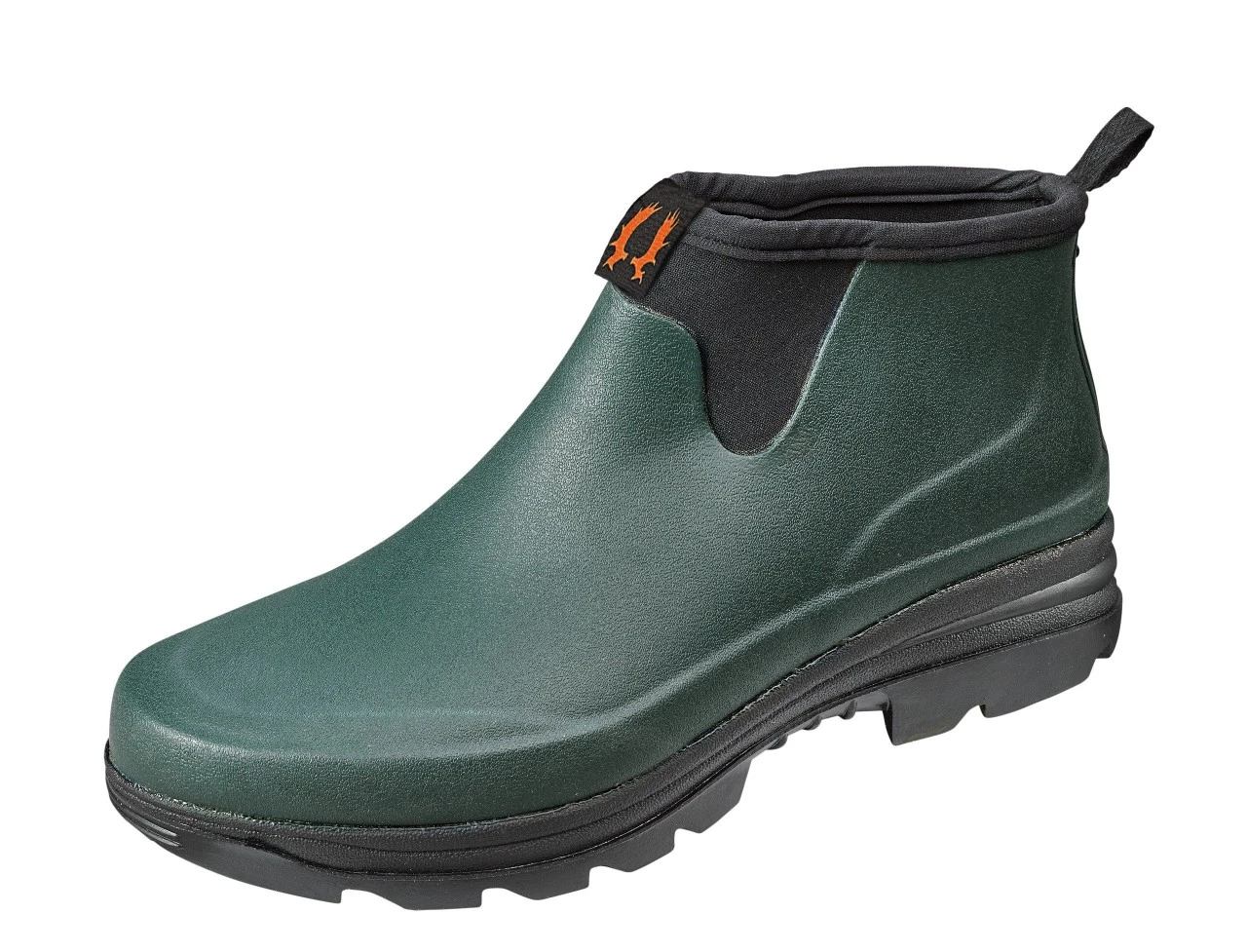 Nordforest Huntings gummi-ankelstøvler, Hortus, er omhyggeligt håndlavet af naturgummi i Europa. De er utroligt behagelige og perfekte til havearbejde og fritid. Indersiden er udstyret med hurtigtørrende, 4 mm tykt neoprenfor. Det garanterer en behagelig varme. Den gode pasform sikrer masser af komfort og understøtter anklen. Ydersålen af gummi med stødabsorberende hæl er ekstremt skridsikker og giver stor stabilitet. Indlægssålen er anatomisk formet og kan tages ud og vaskes. Skafthøjde 10 cm. Vægt 1380 g (Str. 43).