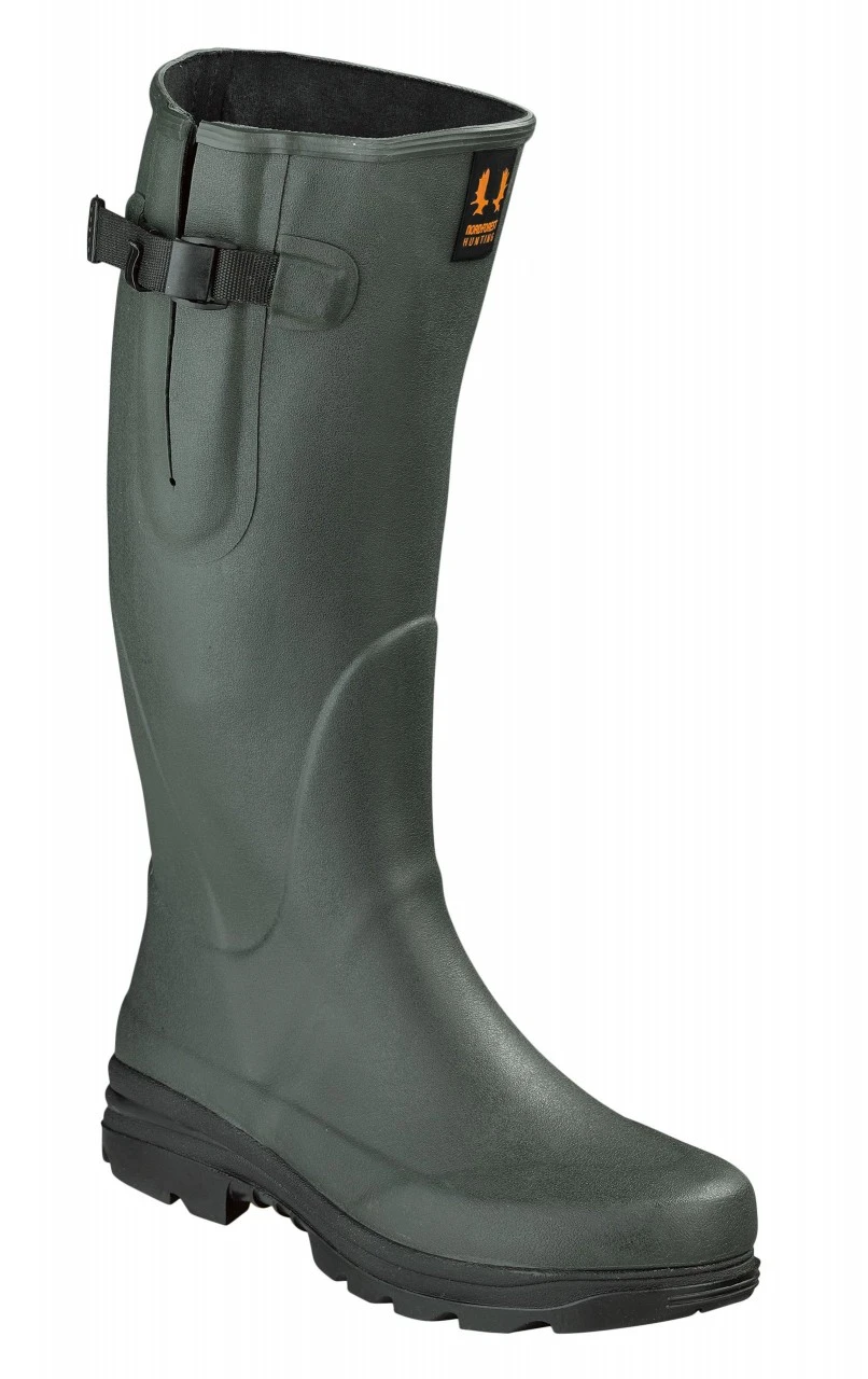 Gummistøvle af vulkaniseret naturgummi med jerseyfor. Indstillelig skaftvidde. Stabil, skridsikker sål med stødabsorbering. Komfortabel og med god pasform. Skafthøjde 38 cm. Vægt 1935 g (str. 43).