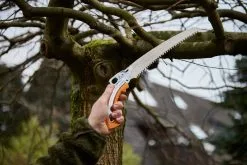 Silky-håndsaven Gunfighter Curve 300-8.5-6 er fremstillet af japansk kvalitetsstål og er et værktøj af høj kvalitet til mange savningsopgaver. Saven er særlig velegnet til frisk træ. Den forskudte tandning fra 8,5 til 6 tænder pr. 30 mm gør savarbejdet mere effektivt og hurtigere, samtidig med at den samme fremføringshastighed opretholdes. Rengøringstanden, der er specielt udviklet til Silky Gunfighter Curve, kaldet Gokai-Me, gør det muligt at fjerne savsmuld effektivt under savning.