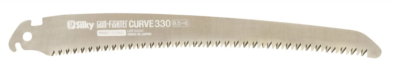Dette reserveblad passer til håndsav Silky Gunfighter Curve 330-8.5-6 (nr. 70-387). Skærelængde 330 mm. Tandbredde 3,5–5 mm.